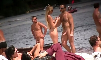 Public voyeur enjoys nude beach bang-out