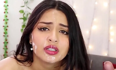 Watch interracial facial for hot dick sucking brunette