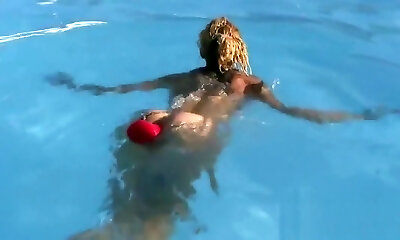 Lewd blond haired nymphomaniac in fishnet top was teasing her anus with chain