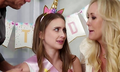 Rough birthday gangbang for a steamy brunette - Madison Wilde