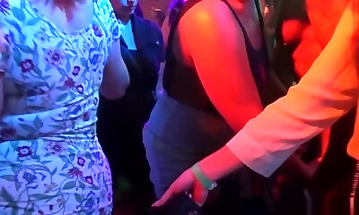 Soiree bi-otches have fun while fucking right in the middle of the night club