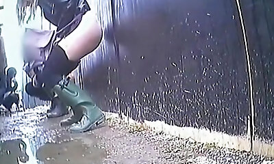 Striking Lesbian In Mini-skirt Pissing In The Kitchen