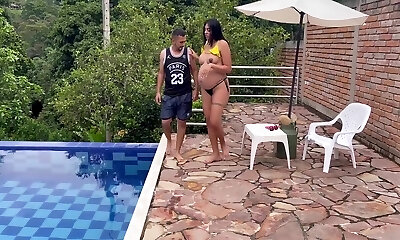 Angel Cruz And Sarah Dark-hued - Fucks Bulky In Front Of Her Home Pool