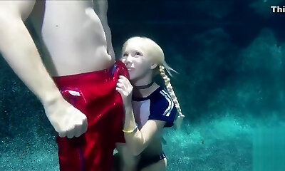 Holding breath long underwater Aidra Fox gives a proper blowjob