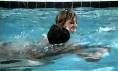 Young platinum-blonde Sabrina Blond is swimming in the pool and making love with her boyfriend