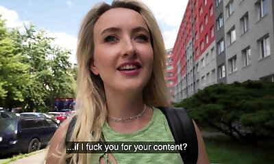 Busty towheaded teenage Stella Cox Hitch Hike with a stranger from not catching on the bus on the street