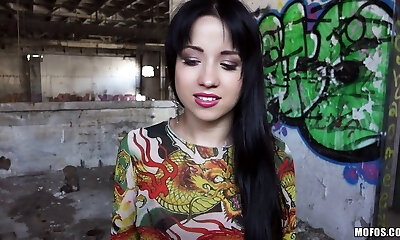 Colorful Russian gal sucks a trouser snake in public for some cash