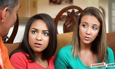 Cute girl Ember Stone gets her beaver and throat fucked by horny step-dad
