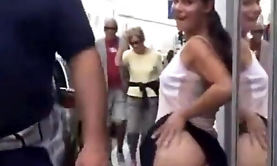 Pretty chick in a wicked slutty dress flashing in public