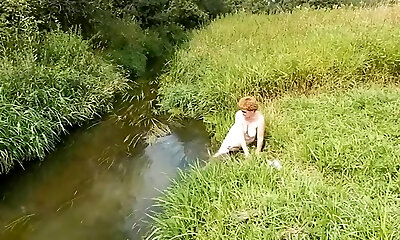 Cutie is in the nature getting bare and pleasing her horny poon