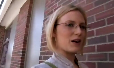 Blonde Roxxi Silvers glory hole cumshot