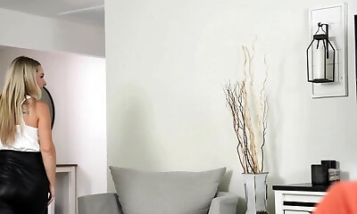 पतला गर्म सुनहरे बालों वाली माँ सिखाता है उसे मासूम सौतेले बेटे कैसे बकवास करने के लिए ठीक से