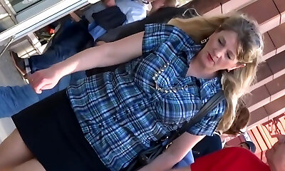 विशाल-स्तन में फैलाएंगे मिनी sundress और एक बन गया