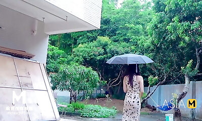 Ponytailed चीनी महिला साफ मुंडा और खराब कर दिया है द्वारा टी