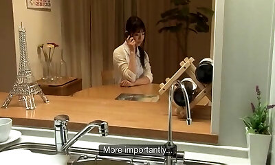 Wife boinked hard with tongue while washing dishes in the kitchen, getting her to cum before her stepmom gets home.