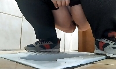 Piss pouring out of hot pussy on toilet voyeur scenes